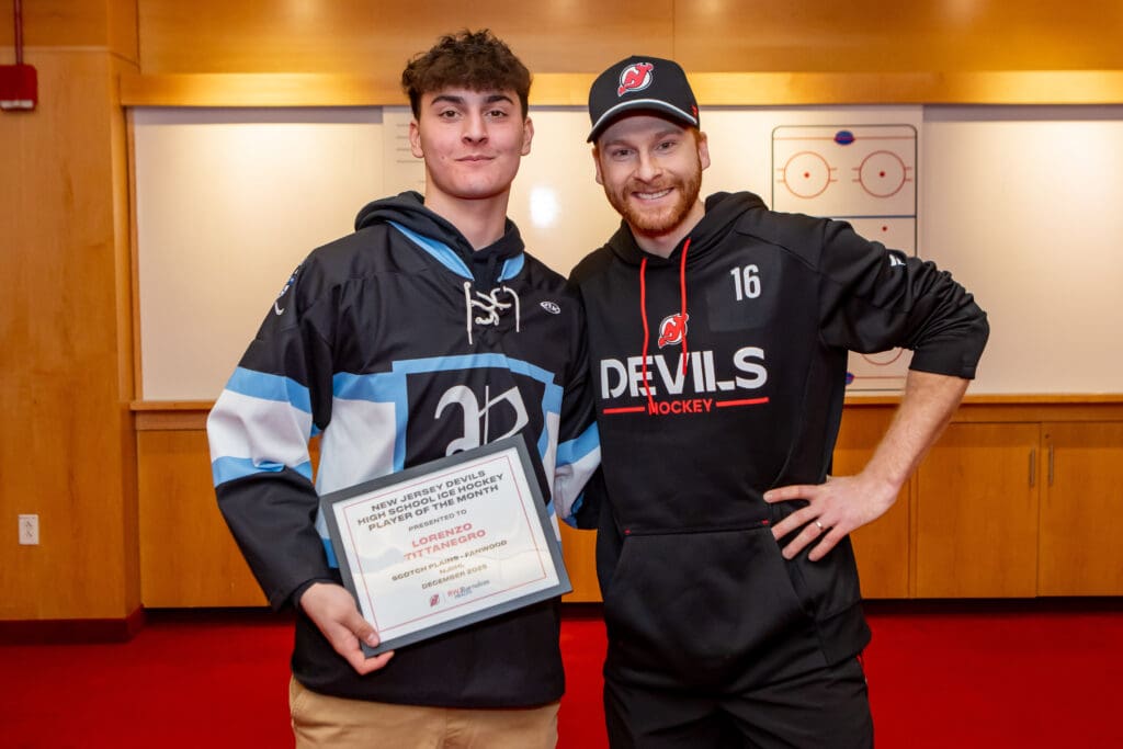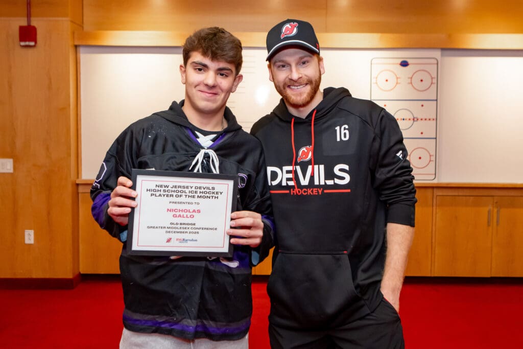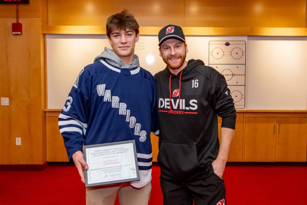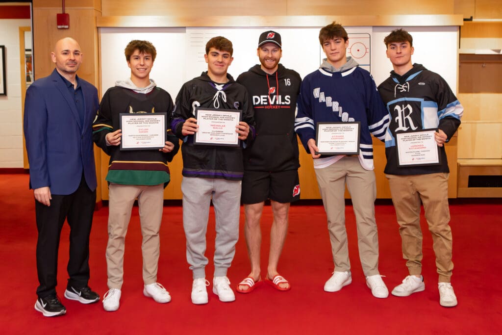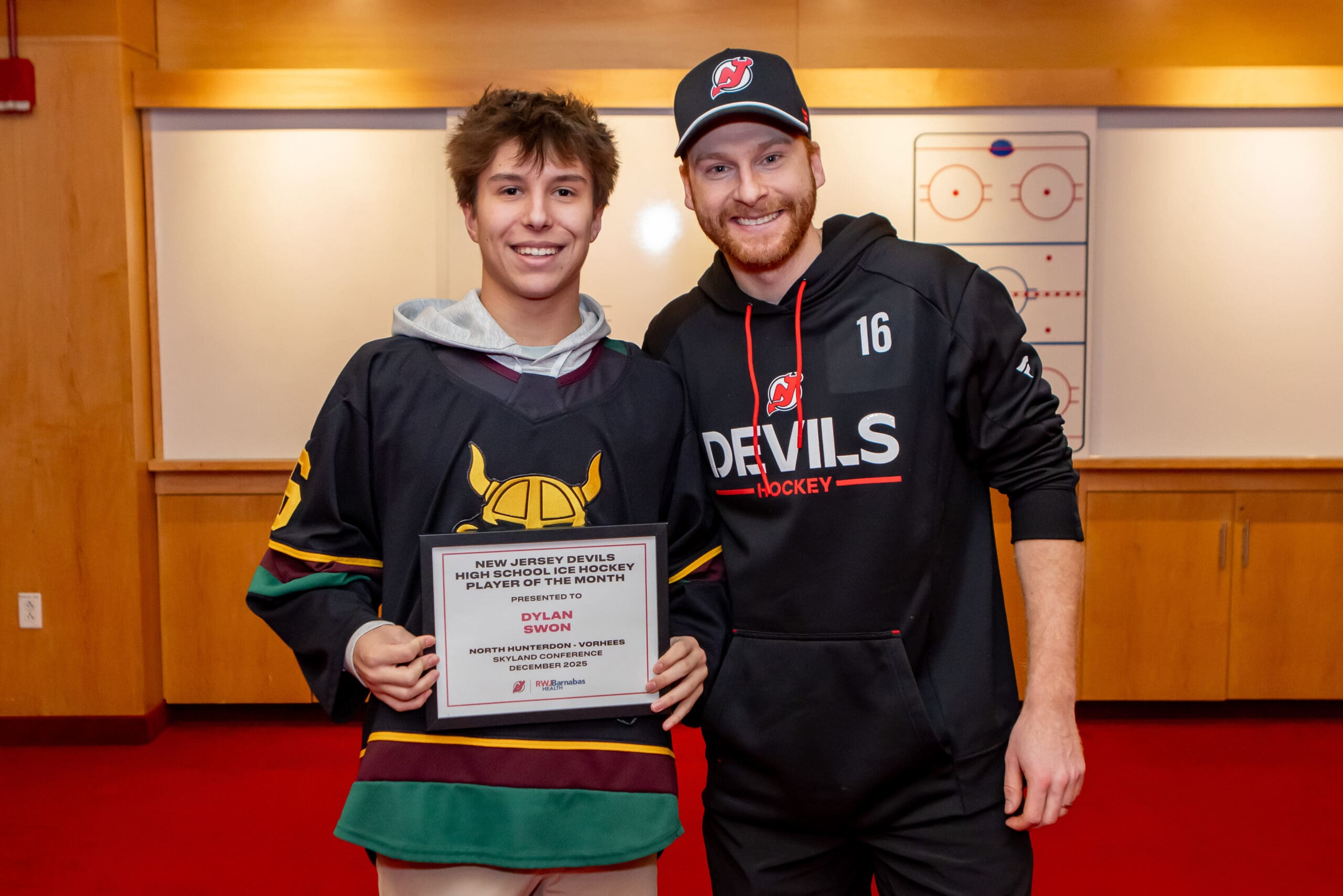 The New Jersey Devils Players of the Month Program presented by RWJBarnabas Health honors one player from each New Jersey High School Hockey Conference as chosen by local media. Players are invited to a New Jersey Devils game and have a meet and greet with a current Devils player before the game.